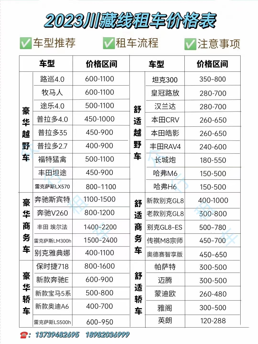 2023川藏線租車價(jià)格表
